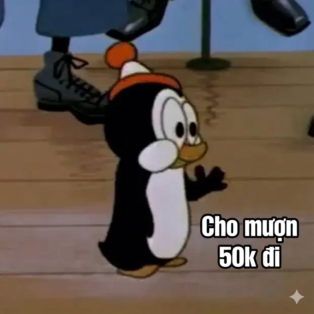 Chim cánh cụt nghiêm túc vay tiền “cho mượn 50k đi”